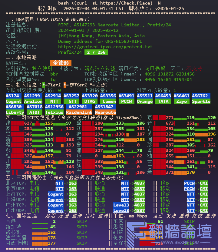 ** 正在测试IPv4解锁情况 -------------------------------- ** 您的网络为: isp (185.113.*.*) ============[ Multination ]============ Dazn: 原生解锁 Yes (Region: HK) TikTok: 原生解锁 Yes (Region: ALISG) Disney+: 原生解锁 Yes (Region: HK) Netflix: 原生解锁 Yes (Region: HK) YouTube Premium: 原生解锁 Yes (Region: HK) Amazon Prime Video: 原生解锁 Yes (Region: HK) TVBAnywhere+: No iQyi Oversea Region: 原生解锁 HK YouTube CDN: Hong Kong Netflix Preferred CDN: Hong Kong Spotify Registration: No Steam Currency: HKD ChatGPT: 原生解锁 APP Only (Region: HK) Google Gemini: No Bing Region: HK Wikipedia Editability: Yes Instagram Licensed Audio: Failed ---Forum--- Reddit: 原生解锁 Yes (Region: HK)=======================================VPSVPN vpsxb.net 原创, 转载请注明出处.测速