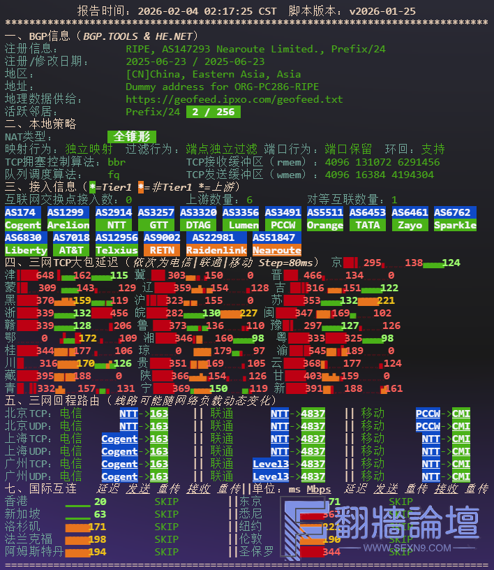 4 10.196.95.173 * RFC1918 2.87 ms [MPLS: Lbl 59893, TC 0, S 0, TTL 1] [MPLS: Lbl 48214, TC 0, S 1, TTL 1]5 103.183.26.50 AS149057 中国 上海市 SHIXP - Moerin Network - 10Gbps owocloud.net 8.63 ms6 x.x.x.x * 中国 香港 5.62 ms7 x.x.x.x ASfailed to fetch geoip data failed to fetch geoip data 5.76 ms出口IP情况: